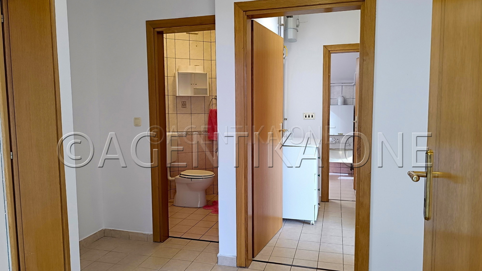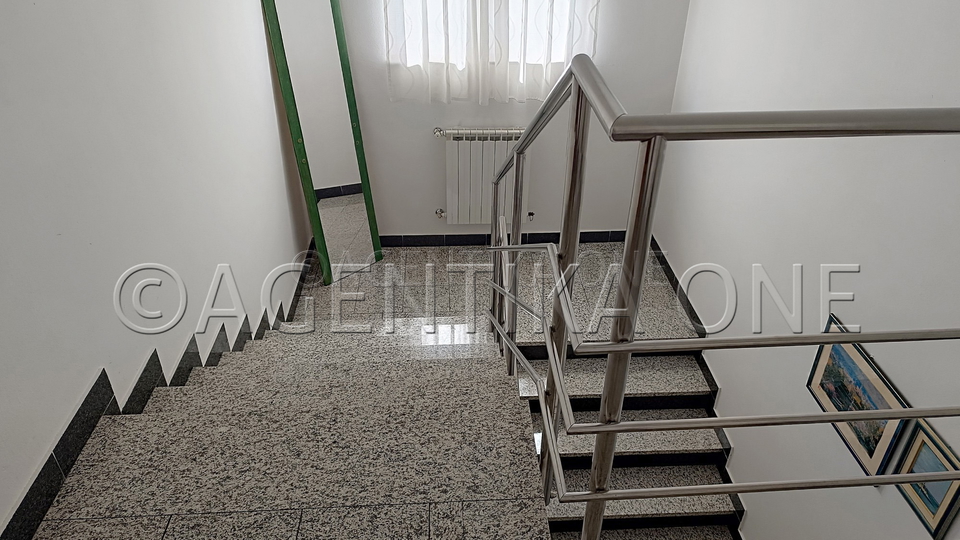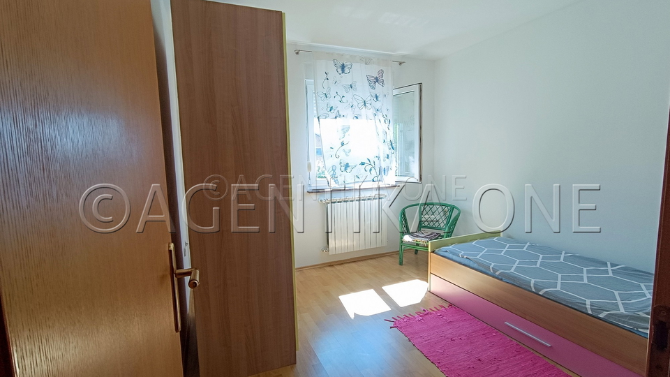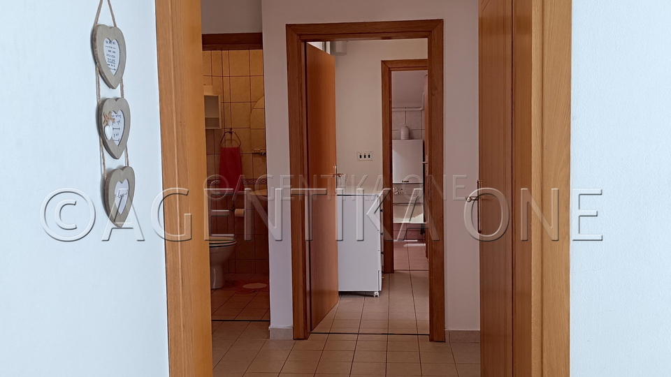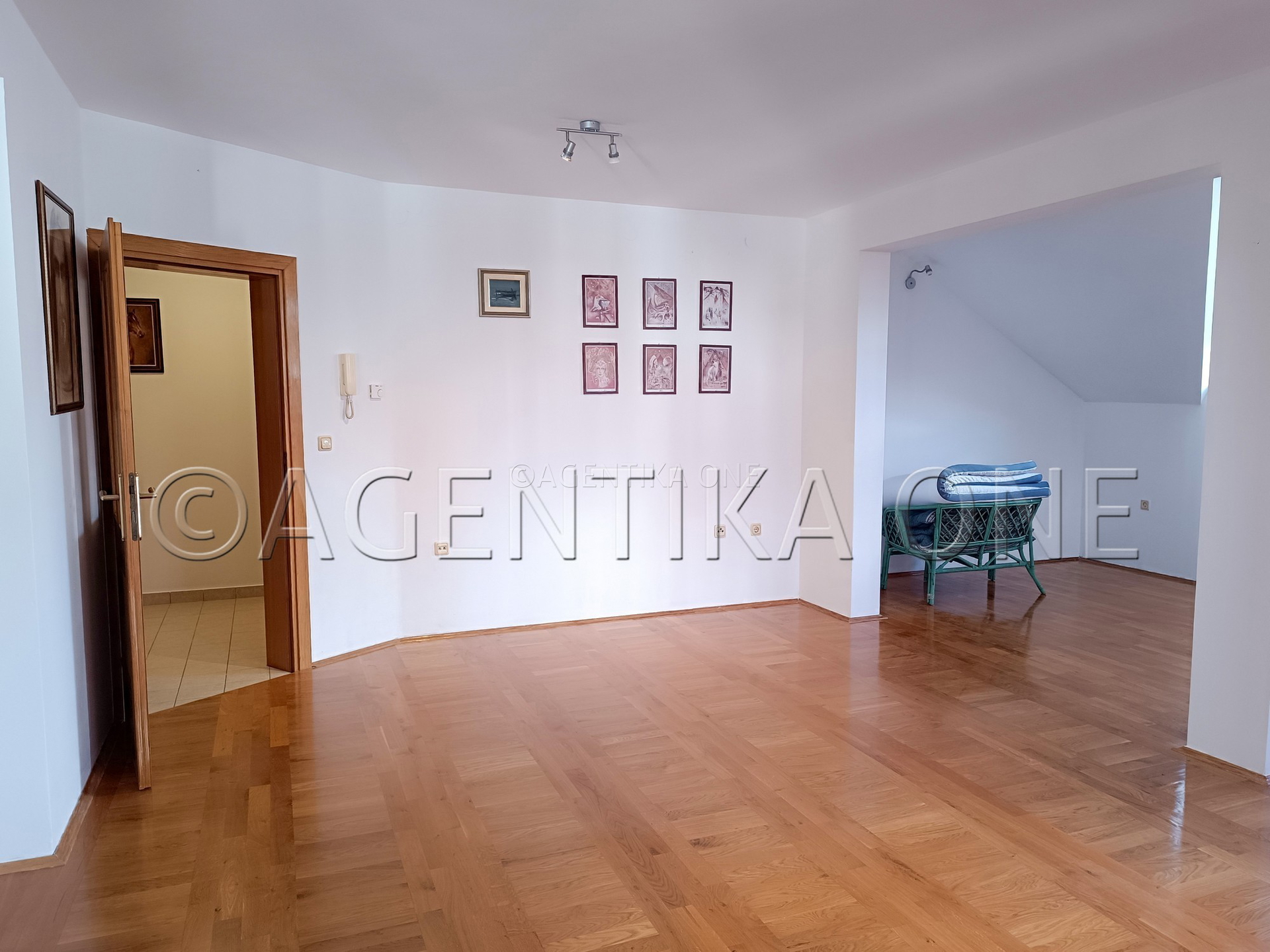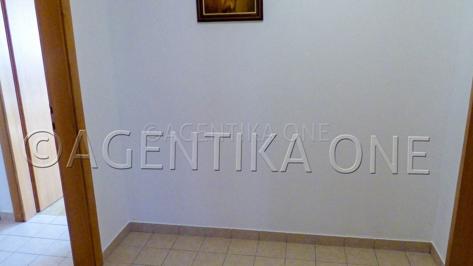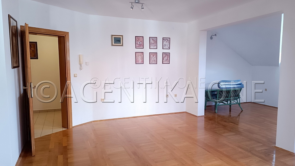 Sastoji se od velikog dnevnog boravka povezanog s blagovaonom, kuhinje s ostavom, velike terase (20,75 m2), 2 spavaće sobe, kupaonice i dodatnog wc-a., a pripada mu i dio okućnice (101 m2). Dnevni boravak je moguće jednostavno pregraditi, te tako dobiti još jednu sobu.