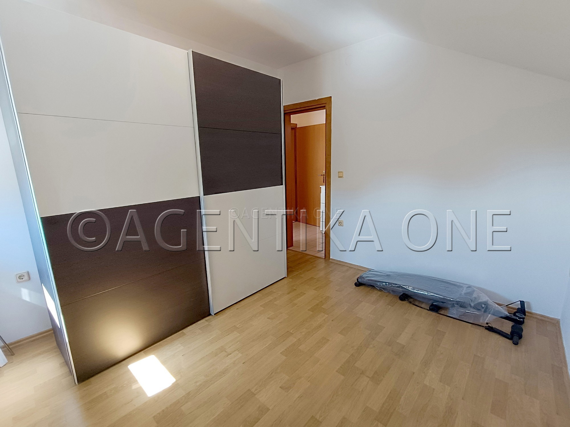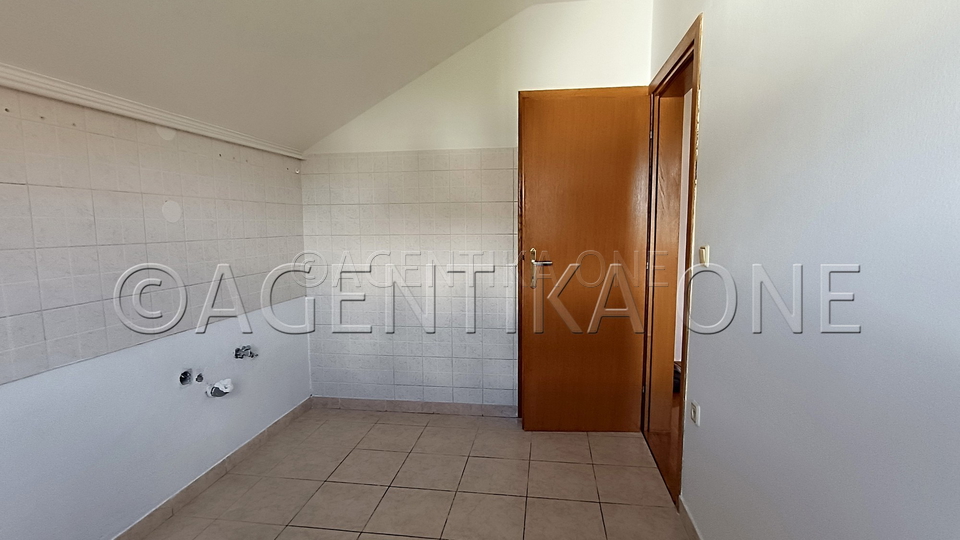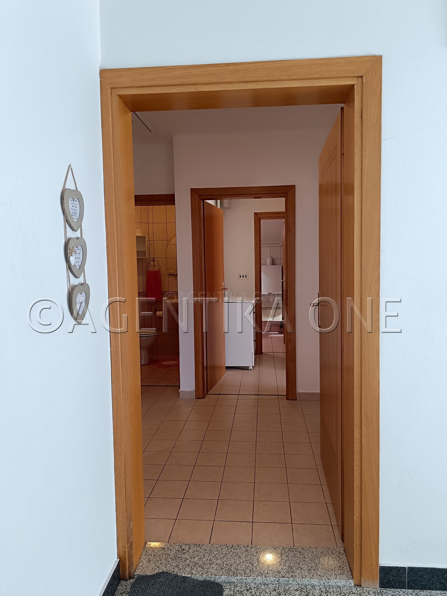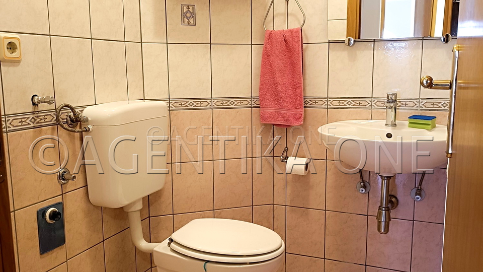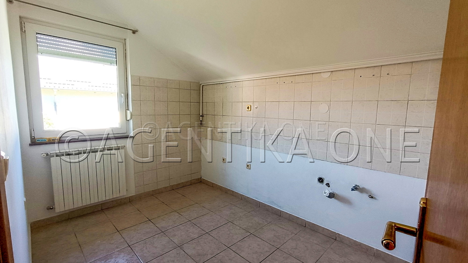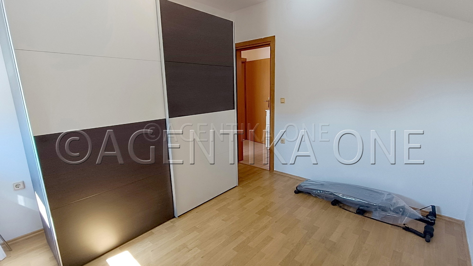 Sastoji se od velikog dnevnog boravka povezanog s blagovaonom, kuhinje s ostavom, velike terase (20,75 m2), 2 spavaće sobe, kupaonice i dodatnog wc-a., a pripada mu i dio okućnice (101 m2). Dnevni boravak je moguće jednostavno pregraditi, te tako dobiti još jednu sobu.