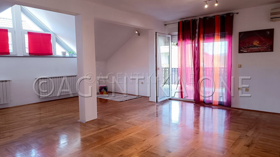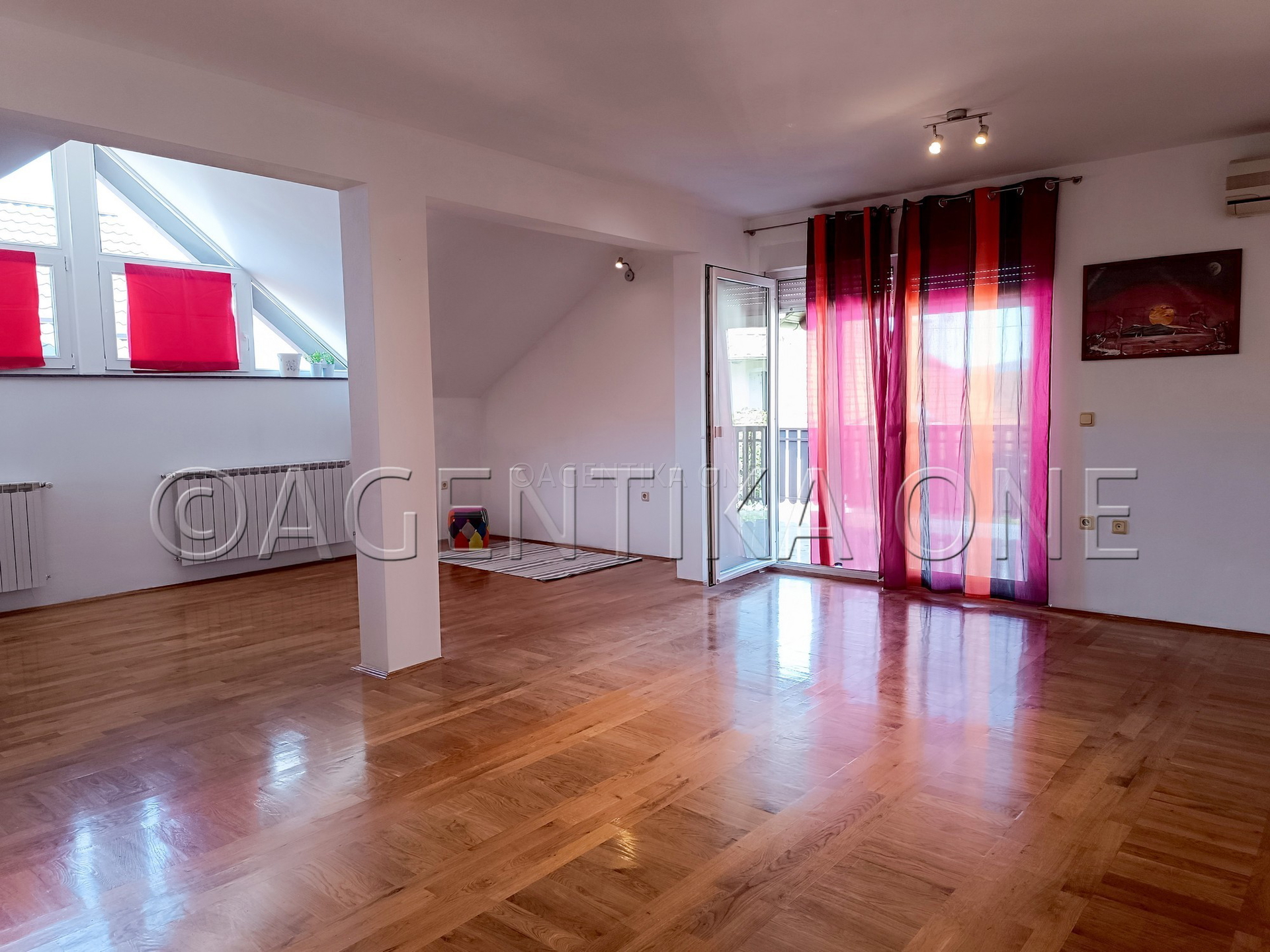 Prodaje se lijep komforan stan na 1. katu kvalitetno građene kuće iz 2003. godine, na mirnoj lokaciji s pogledom na Zagreb, 5 min autom do većih trgovačkih centara, 20 min do centra Zagreba, 5 min pješice do autobusne stanice na kojoj stoji i školski bus koji vozi do OŠ Granešina, blizina 2 vrtića, crkve i manjih dućana.